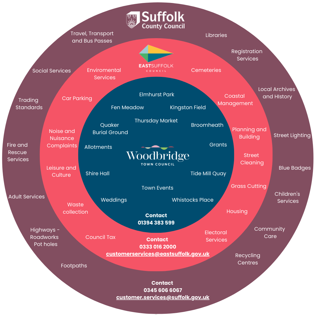 For more information about the responsibilies of the different councils operating in the town please see diagram below.